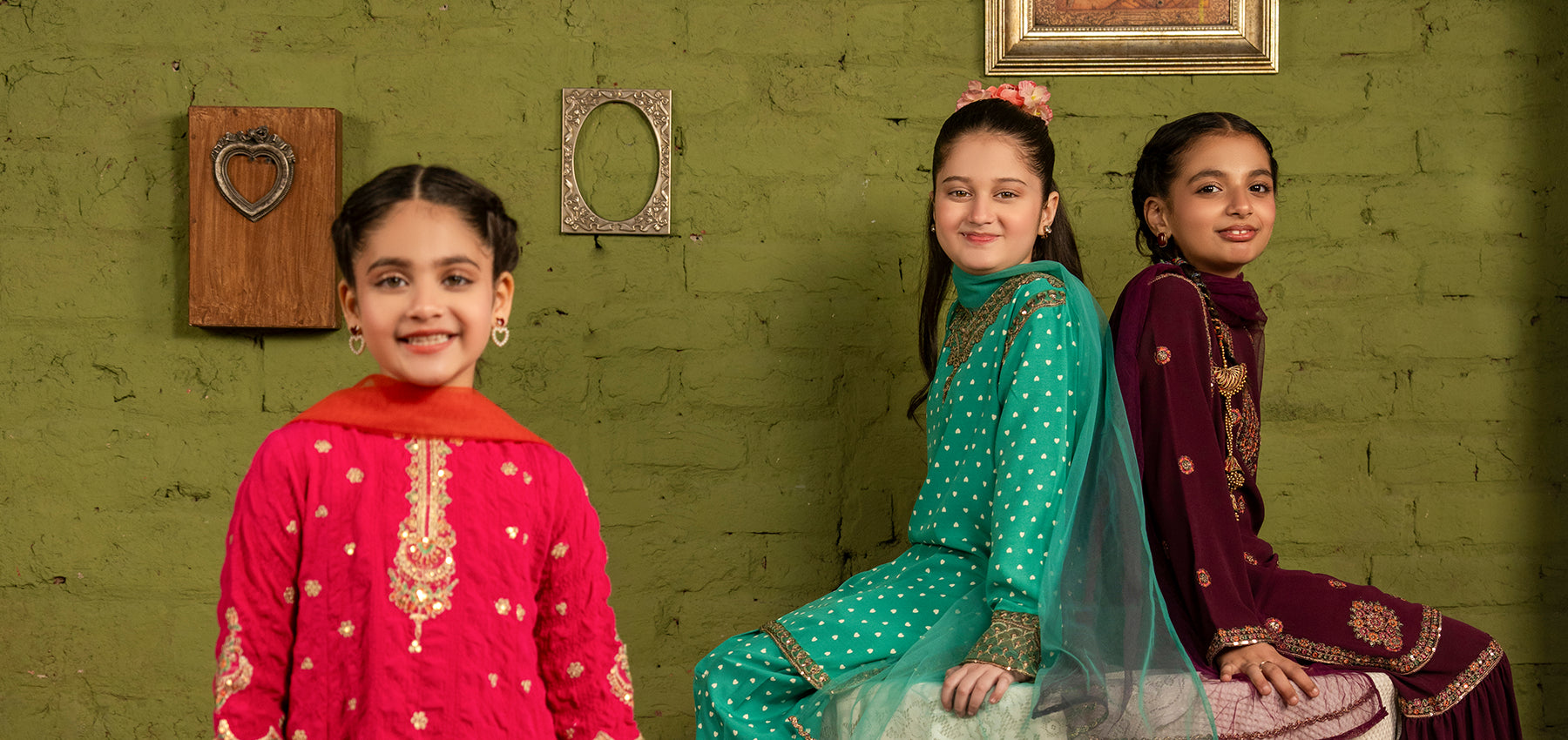 Girls Black Embroidered Outfit – 3-Piece Shirt, Dhaka Pants , and Dupatta Suit Set