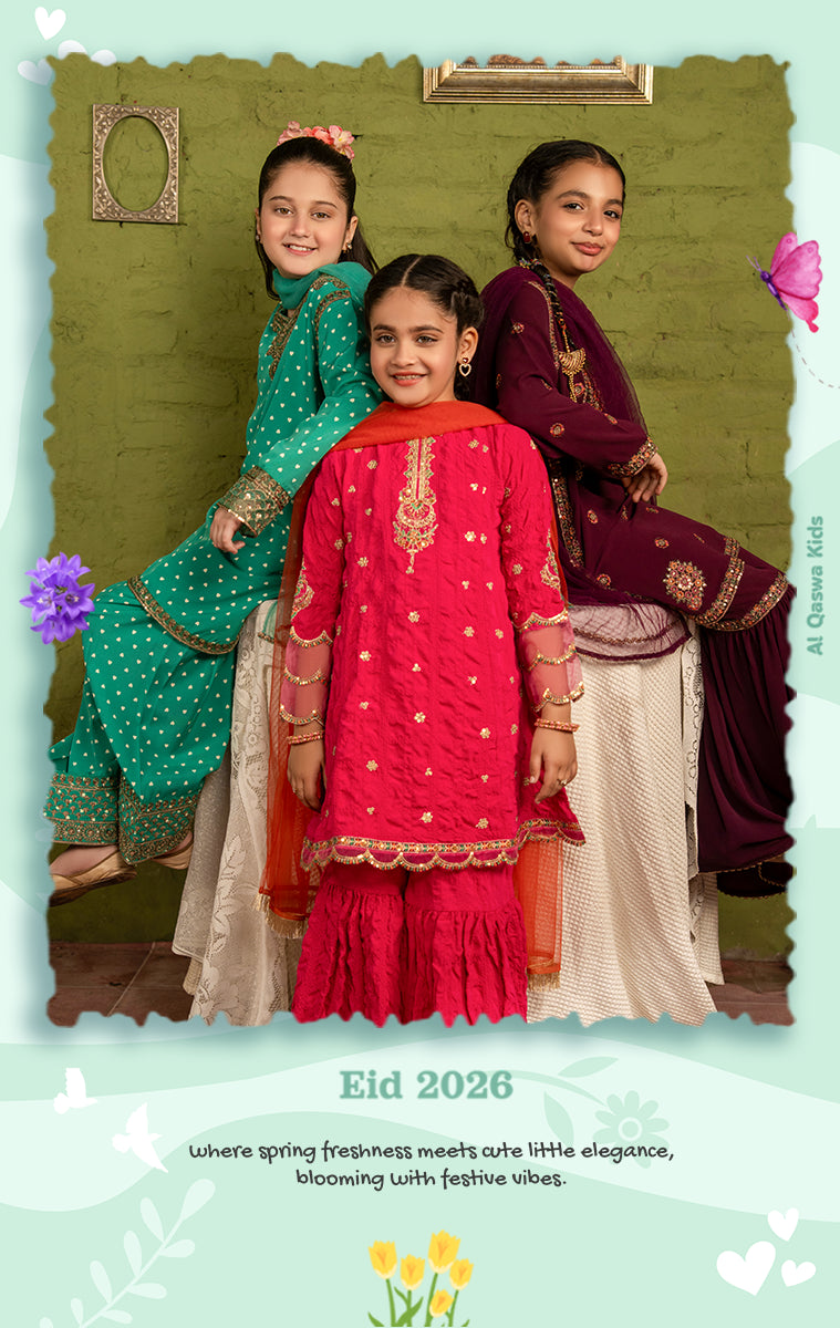 Girls Teal Blue Embroidered Eid V-1 Outfit – 3-Piece Shirt, Shalwar , and Dupatta Suit Set